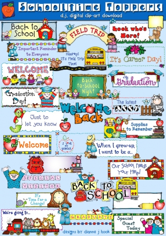 Bundle all 7 toppers downloads & SAVE with our 'Toppers for Teachers' collection! Images are from our former 'School Time Toppers' clip art book.